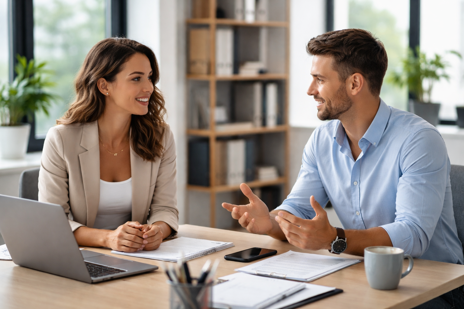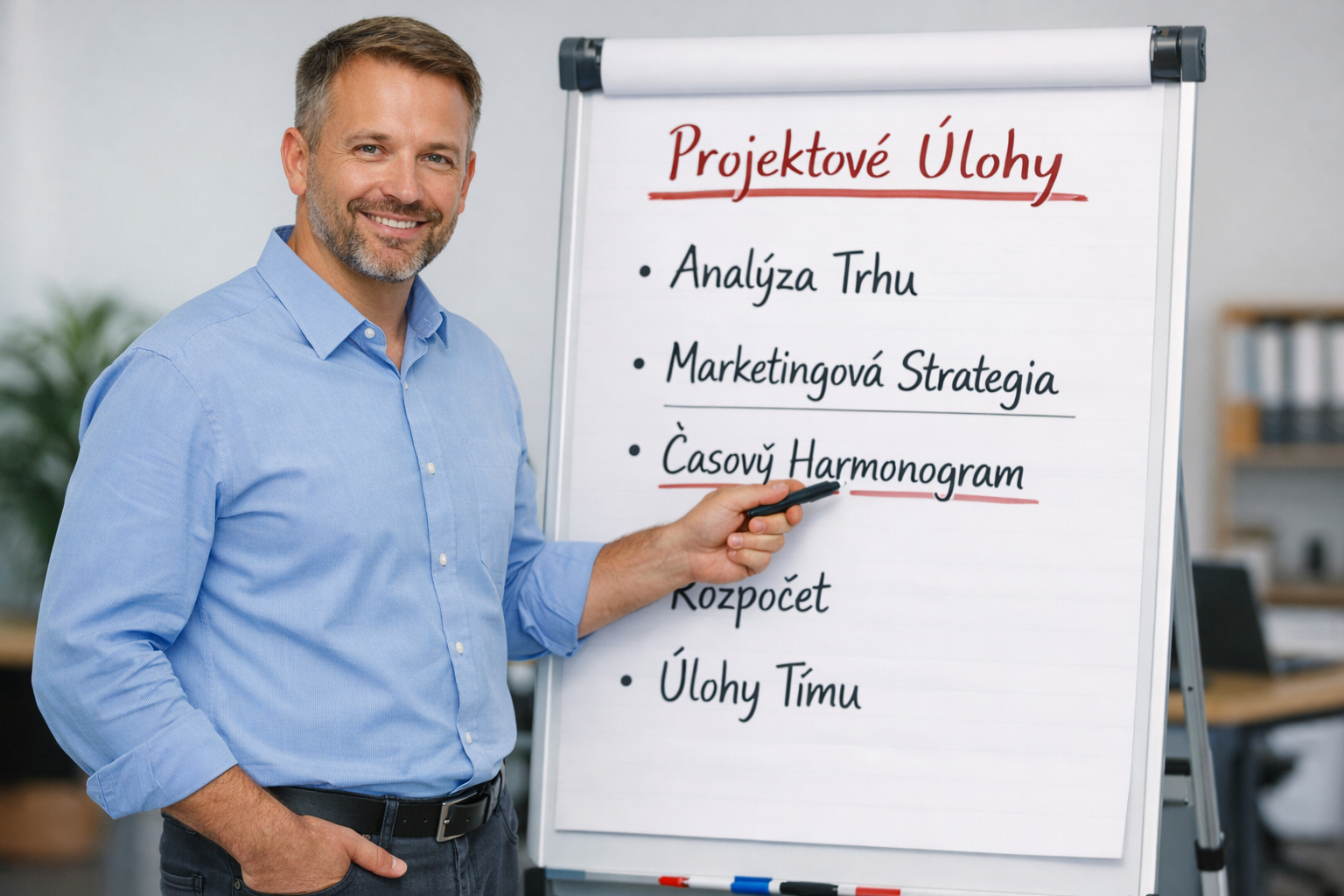 Riaditeľ zadáva učiteľovi úlohu pripraviť prezentáciu o trendoch vo vzdelávaní, stanovuje očakávania pomocou SMART cieľov a podporuje jeho motiváciu.